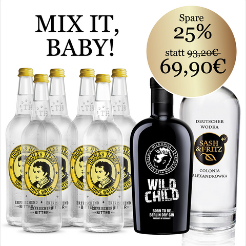 1 Flasche Sash & Fritz Wodka (0,7l)& 1 Flasche Wild Child - Berlin Dry Gin & Gratis 6 Flaschen Thomas Henry Tonic (0,75l) & Gratis Li…